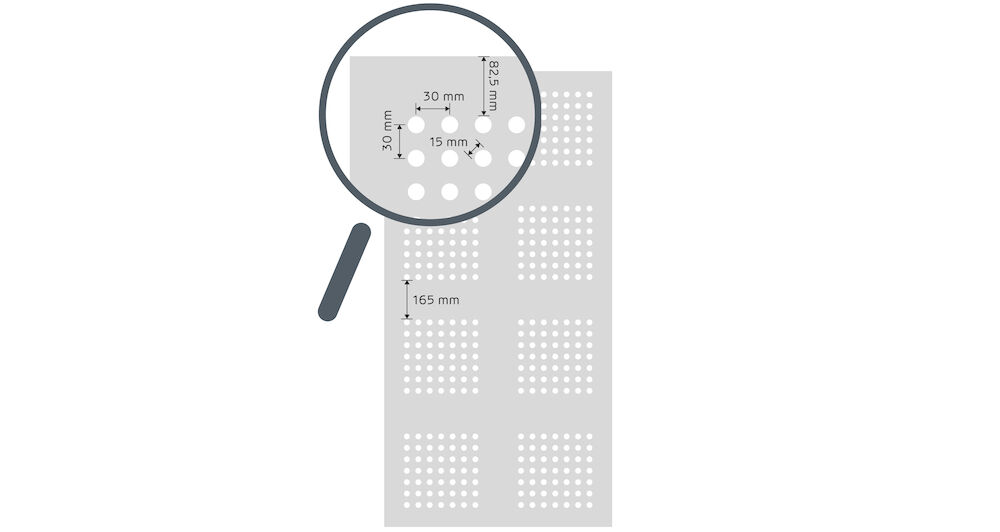 Zvukovoizolačná sadrokartónová doska určená na vyhotovovanie obkladov bez škár. Doska s okrúhlou perforáciou v modulovom usporiadaní, 8 polí na celom povrchu, vhodná obzvlášť do veľkých priestorov s vysokými nárokmi na akustický komfort. Ideálne tlmí hluk spôsobený ľudským hlasom a zároveň redukuje ozvenu – odrážanie zvuku. Akustické rúno je dostupné v bielom prevedení.