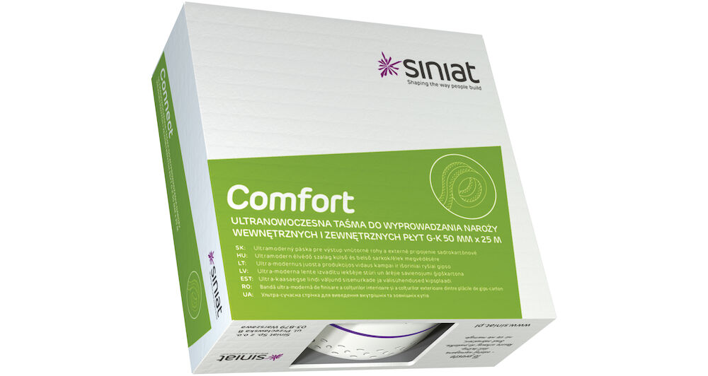 Pásky Comfort od firmy Siniat - sú ultramoderným, kompozitným výrobkom, ktorý sa používa v stavebníctve – na interiérové povrchové úpravy. Základom pásky je biela, vysoko-elastická fólia - odolná voči praskaniu .Je vyrobená z odolnej hmoty, ktorá je nosným jadrom pásky. Po obidvoch stranách je jadro pokryté textilnou vlnou, ktorá umožňuje ľahšie nanášanie stierkovacích hmôt a farieb. Špeciálne navrhnutá perforácia umožňuje jednoduché nanesenie stierkovacej hmoty. Vďaka vysokej nasiakavosti a súčasne drsnému povrchu pásky sa významne zvyšuje priľnavosť k podkladu a odolnosť spojenia. Perfektný povrch pások spôsobuje, že sa dokonale hodia aj na spájanie dosiek kladených na rôzne povrchy. Zúženie, ktoré sa ťahá celou dĺžkou pásky , uľahčuje ich rovné a precízne prehnutie, vďaka čomu pri dokončovaní vnútorných a vonkajších rohov docielime ideálne rovné línie.